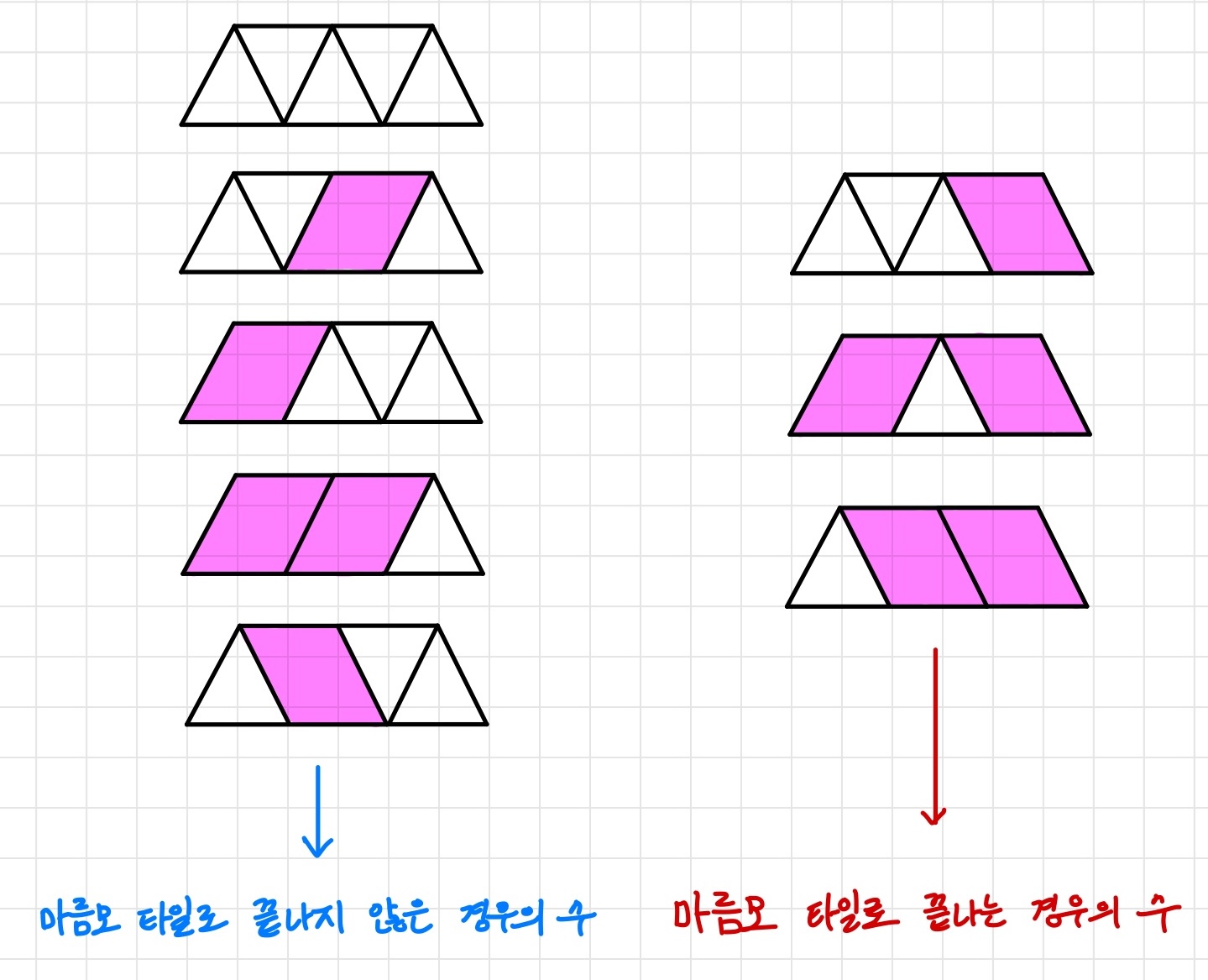 - 마름모 타일로 끝나지 않은 경우의 수는