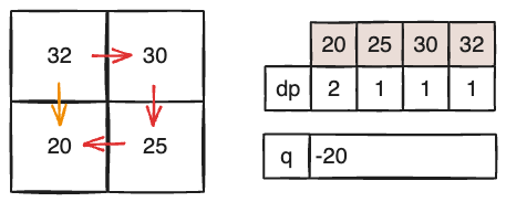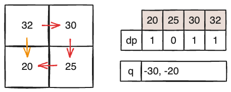 heappush(q, (-board[nx][ny], nx, ny)) # (2)