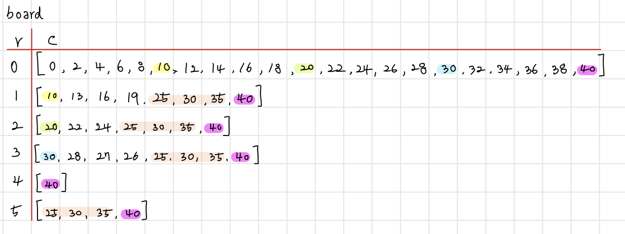 board.append([20, 22, 24, 25, 30, 35, 40])