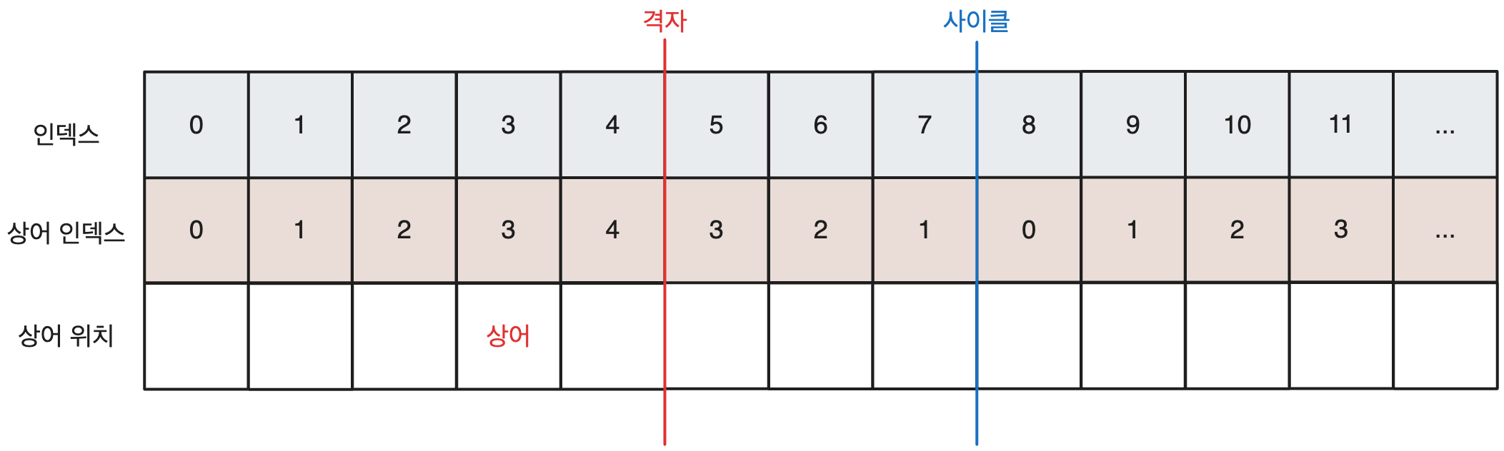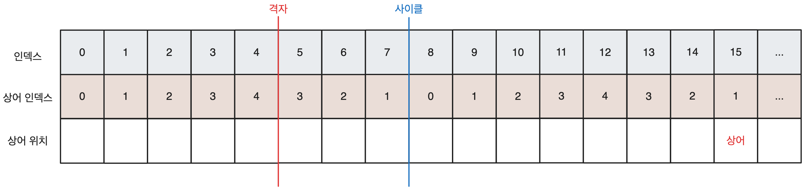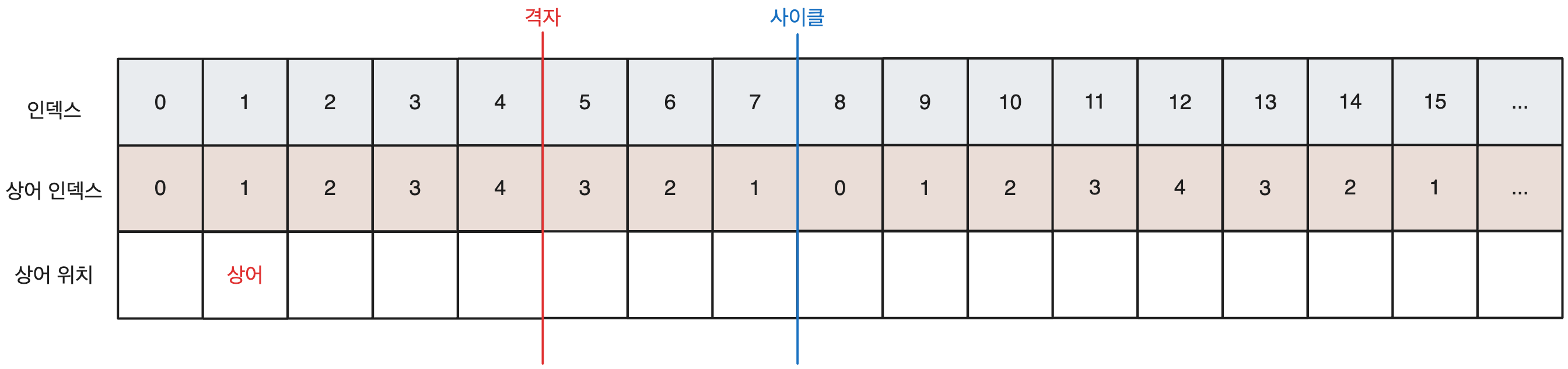 0, 1, 2, 3, 4, 3, 2, 1, ...이 된다. - 상어가 움직일 때 인덱스에 사이클이 발생한다. 사이클 길이는